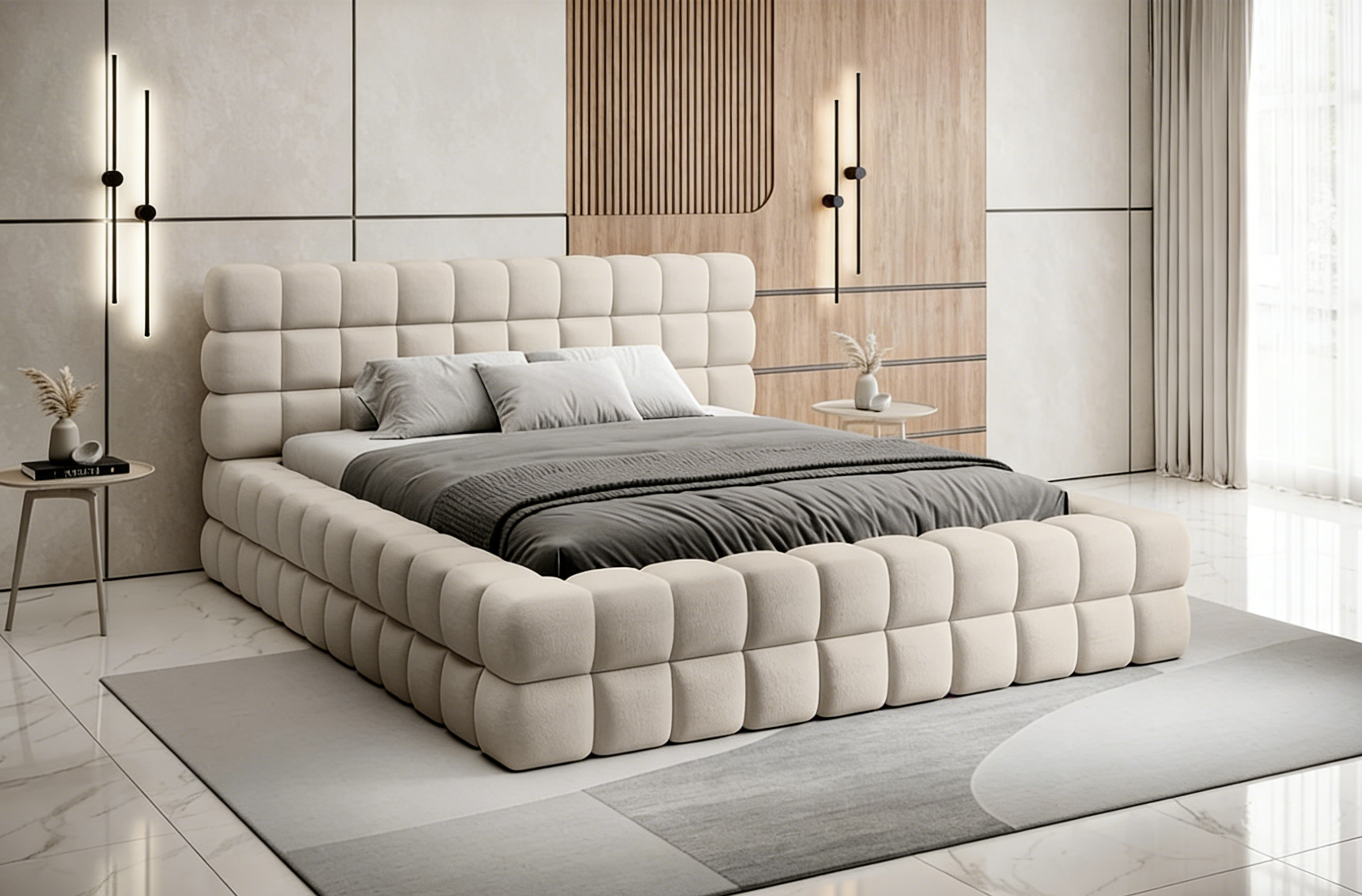 Vertchez Tête de Lit Laine Naturelle 95x105cm avec Pieds de Lit 90 - Beige